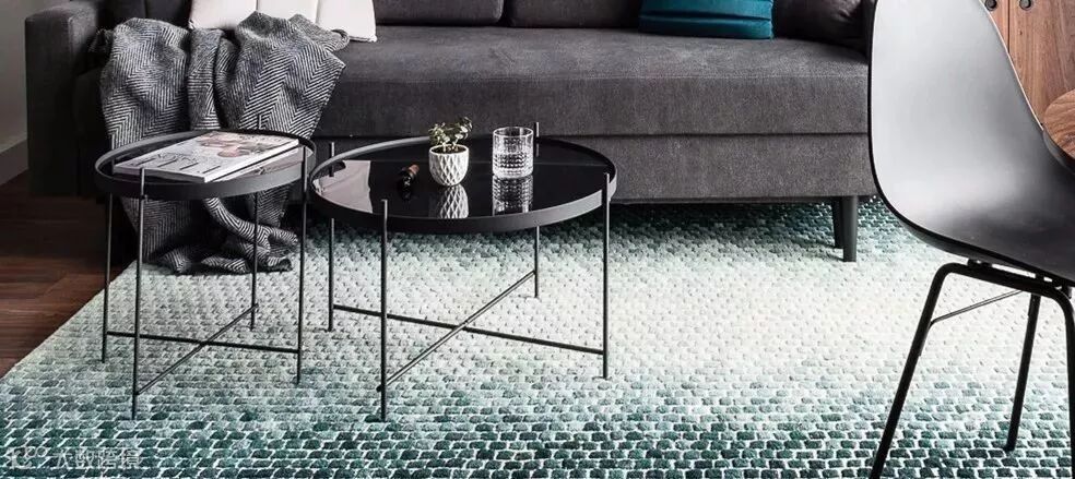 到木质地板上铺设的渐变地毯