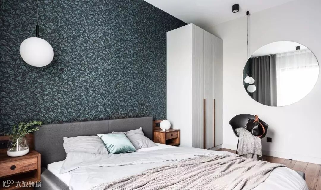 树叶图案的壁纸则显得更为浓郁、雅士