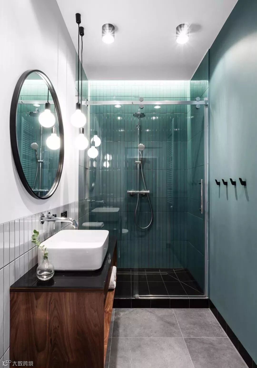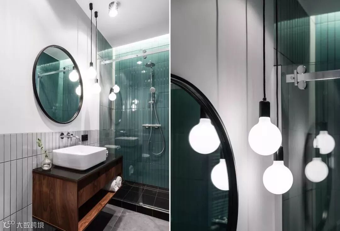 湿区灰蓝色的瓷砖在灯光的作用下