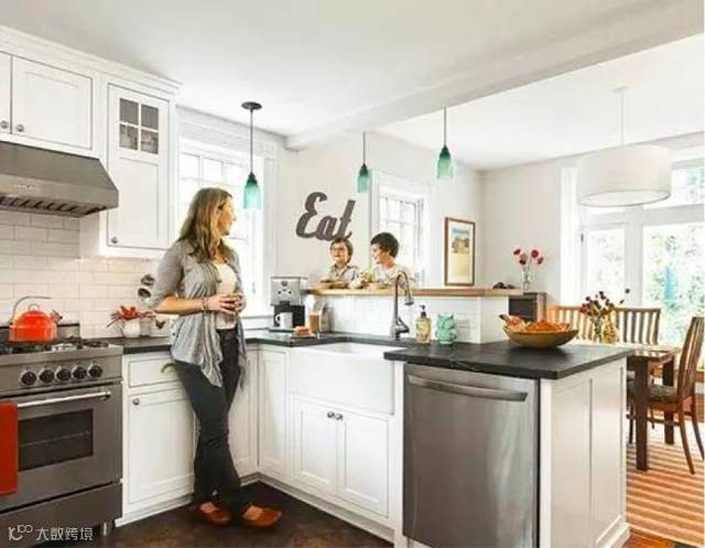 好了,我知道以上的以上还不能完全让你下决定把开放式厨房请回家。那么没关系,还有一个折中的选择,半开放式厨房。