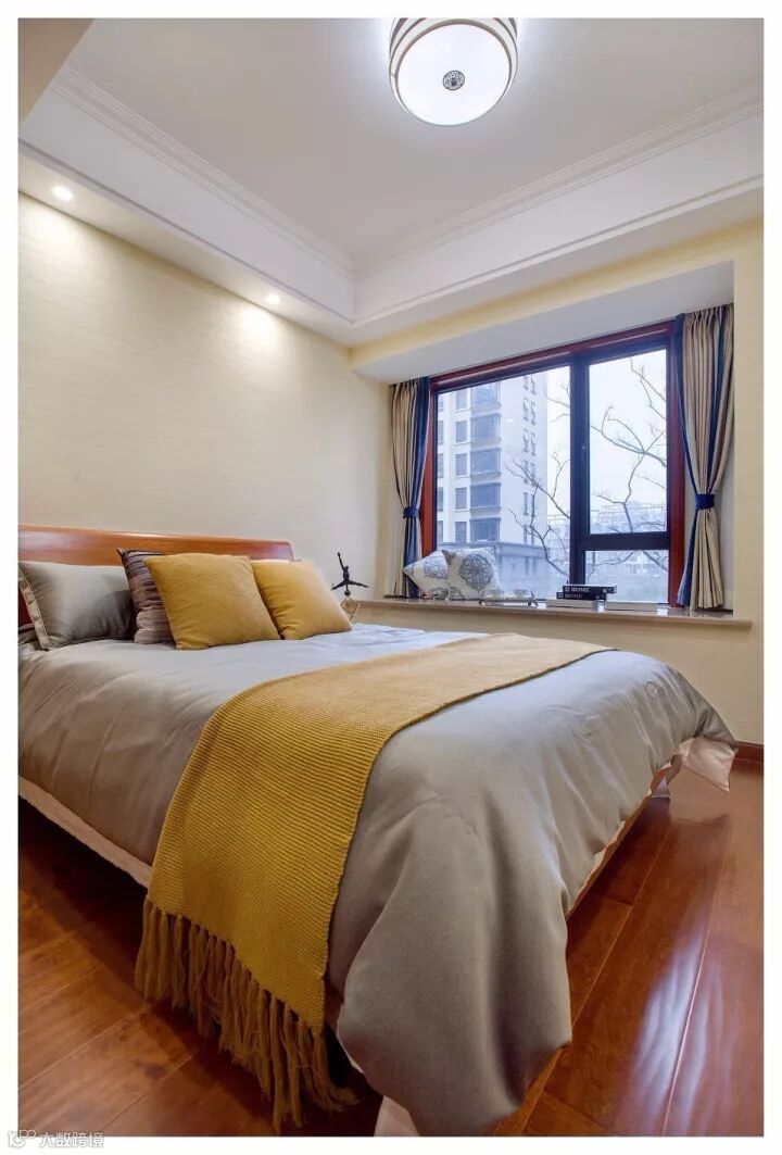 次卧空间温暖明亮,简化了主卧的功能性设计,只保留了睡眠需求。