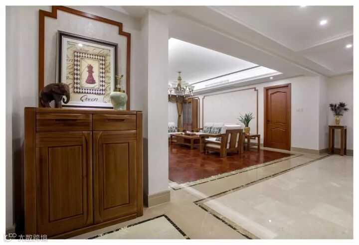 朴素的玄关柜搭配顶端饰品,颇有异域风情的味道。