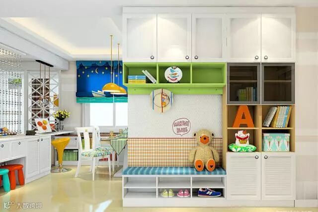 孩子喜欢画画,可一大张纸涂没几下就扔,既浪费还特难收拾。如果把电视柜门设计成小黑板,孩子想咋涂就咋涂,施展色彩天赋,大人也不烦家务。