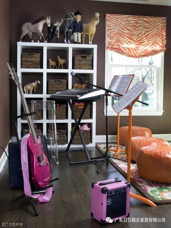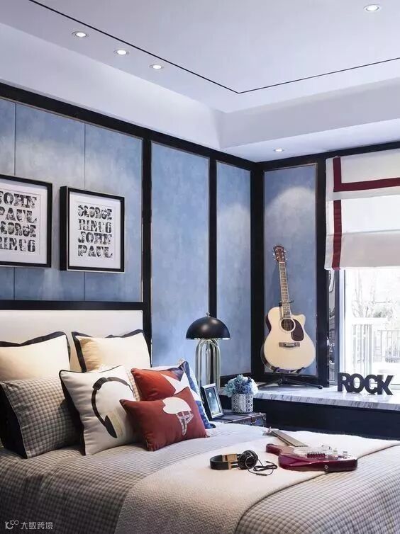 儿童房住的是一个爱好音乐的活泼男孩,整体看上去十分“酷”,符合未来艺术家的气质。
