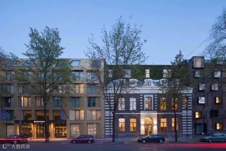 位于荷兰阿姆斯特丹的凯悦酒店,由当地的建筑师van Dongen-Koschuch担纲设计。酒店所在的老建筑原是一个儿童医院,为了满足酒店的要求,在老建筑的隔壁盖了一个新的建筑,建完后酒店共有211间客房及套房。酒店包括有会议中心、酒吧、露台餐厅、以及水疗和健身设施。