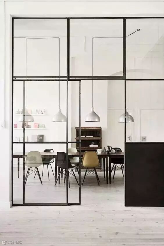 是不是玻璃隔断门只适用于空间小的地方?也不是哟~空间宽敞的地方同样适合哟。它能自然的划分空间,过渡区域功能。