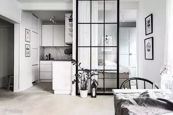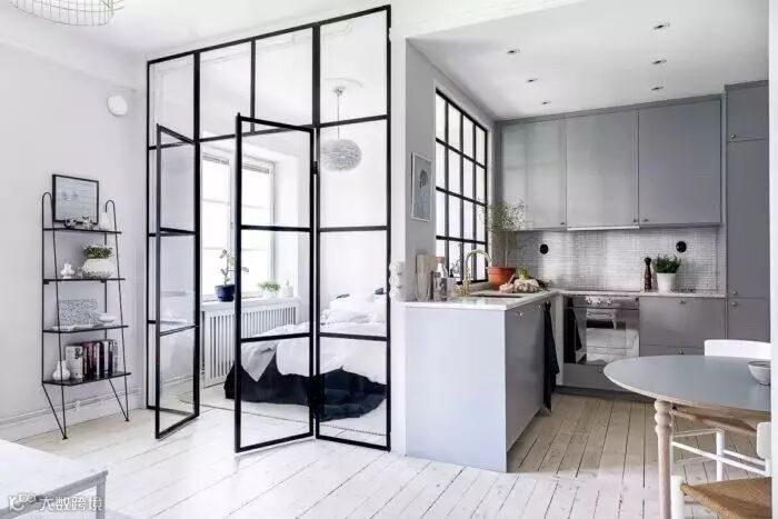 还有想要做开放式厨房,但又担心油烟的朋友也可以考虑玻璃隔断门啦。