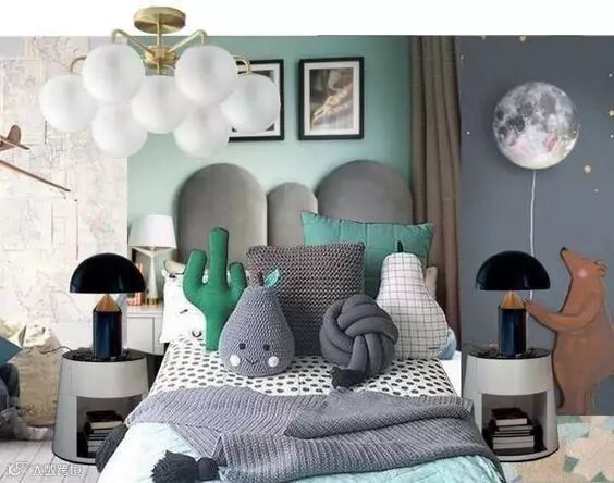 孩子的成长深受环境的影响,所以在儿童房的环境营造和氛围烘托上,我们需注意保护孩子的想象力和创造力,以协助引导他们成长。