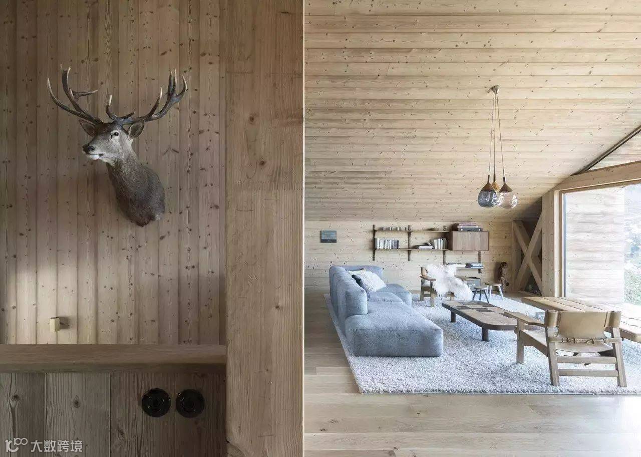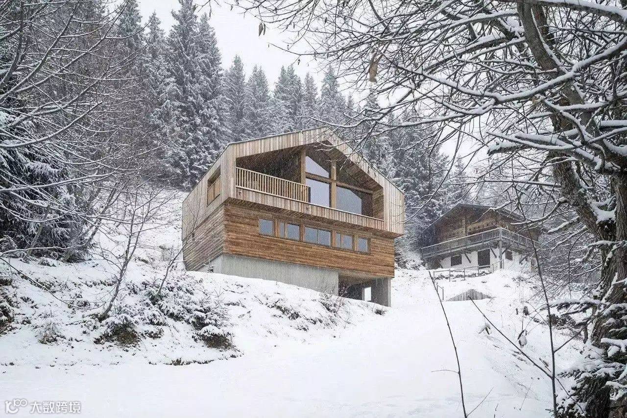 阿尔卑斯山脉上严格的建筑标准,住宅从建筑高宽比,屋顶坡度,建筑材料和窗户尺寸等都受到严格的控制,限制了这里的住宅设计灵活性。因此,为了在当地建筑限制之下设计出满意的住宅,设计师花大量的时间和经历去研究当地历史建筑,将这些研究信息整合到设计中,建造出既迎合当地传统建筑形态,又符合建造规范的住宅,使其成为理想的度假之所。