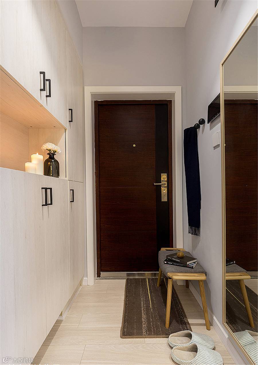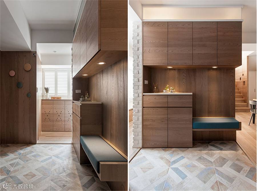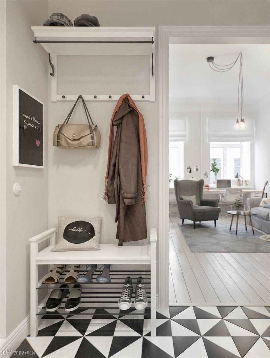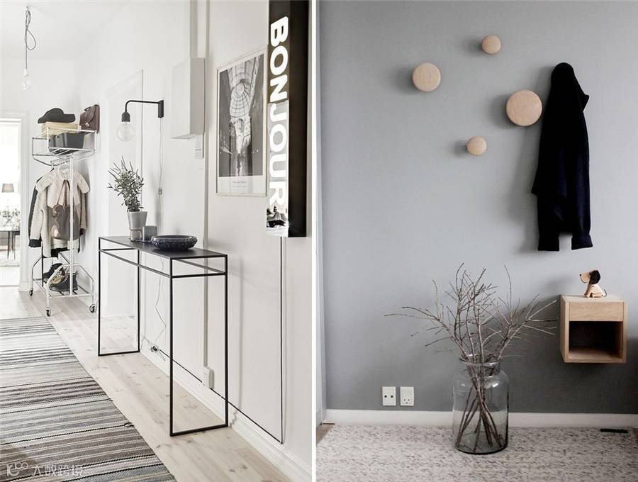 对于一般的家庭来说,玄关最重要的还是要满足基本的生活需求。够大的通风鞋柜、够多的挂钩或衣架,再加上换鞋用的凳子,能便利生活,即可。