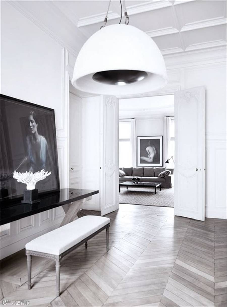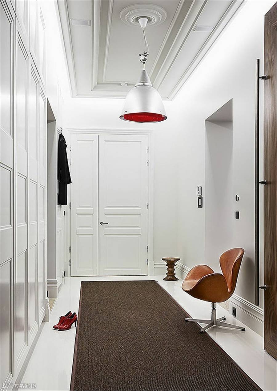 首先长长的玄关里需要保证足够的照明,在此基础上,可以通过边柜和装饰物来丰富空间,亦或是趋于简约,装成艺术长廊的形式。