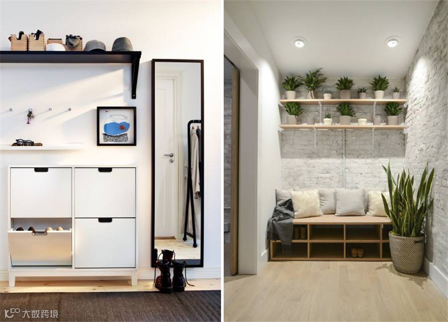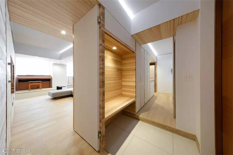 若是没有玄关,在能开门见山的基础上,用半隔断的方式隔出一个玄关来,或是利用地台区分空间,或是使用衣柜阻隔视线,都十分实用。