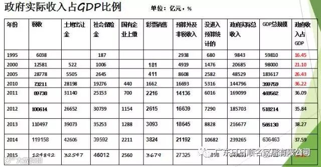 中央党校教授周天勇有一组数据,认为中国企业非常大的问题就是宏观税负率太高,1995年宏观税负率只有16.5%,2000年也只有21%,2005年26%,2010年一下子干到36%了,2015宏观税负率36.9%将近37%了。