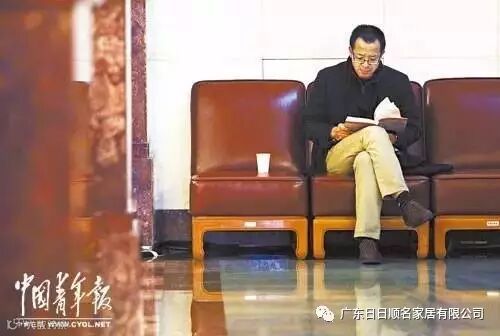 ▲在北京人民大會堂開幕前,俞敏洪在角落里阅读