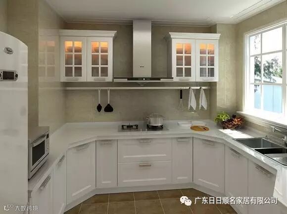 ▲L型设计 尽量利用中间地带操作,洗、切、炒形成三角区域,符合人体工学。一般适合小户型厨房装修,吊柜、地柜转角部分形成视觉和使用盲区。