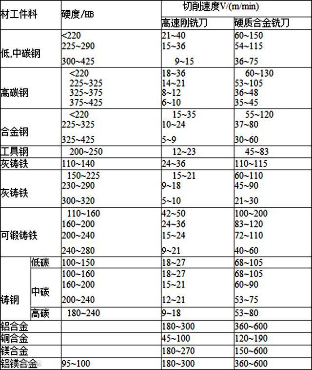 1.铣削速度V指铣刀旋转时的圆周线速度,单位为m/min