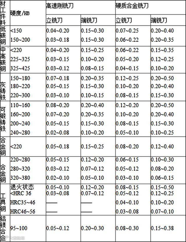 z——铣刀(主轴)转速,r/min。n——铣刀齿数。