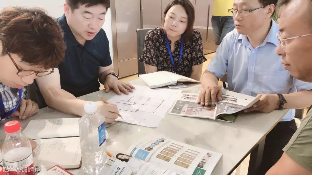 姜部长现场与辽宁艺萌斯加盟商交流展厅设计方案