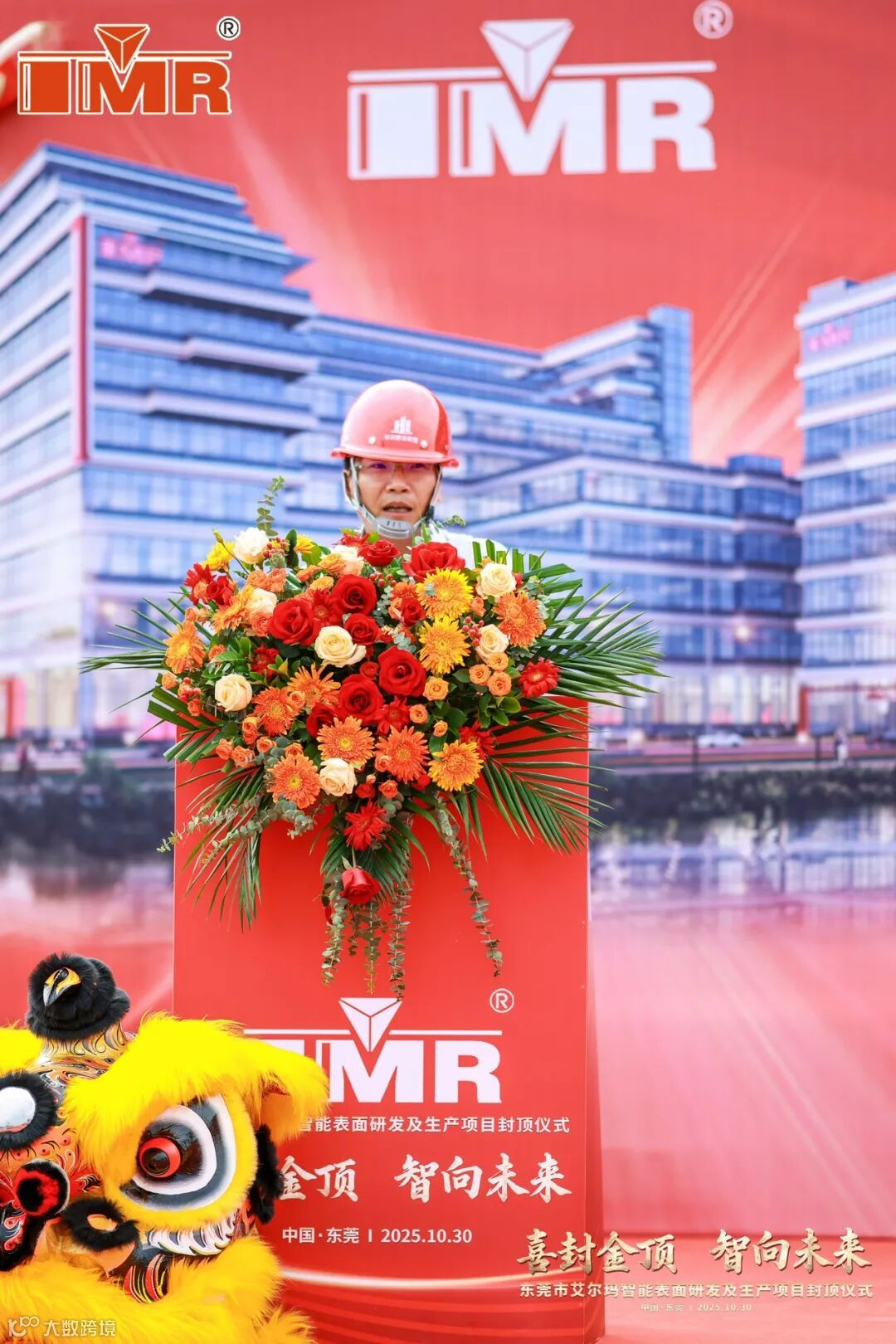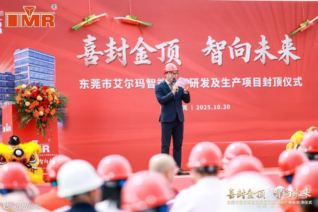 仪式上,主持人石头(东莞市广大文化传媒创始人/总经理)热情开场,阐述了项目封顶的多重意义,这不仅是建筑工程的阶段性胜利,更是艾尔玛科技深耕智能表面赛道、推动“科技创新+实业落地”的关键一步,为区域智能产业发展、行业技术转化筑牢了根基。