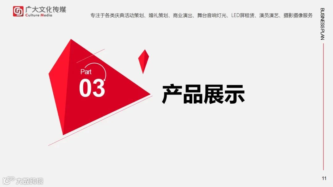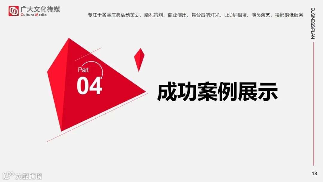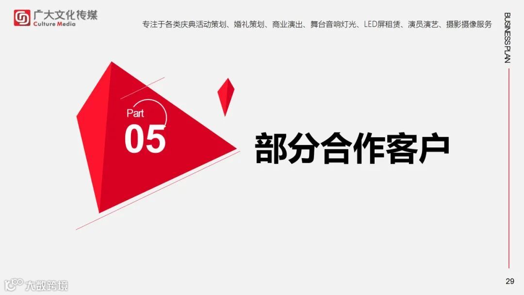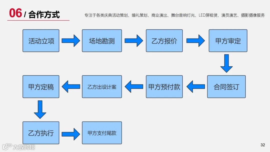 导读:活动策划/全案设计/婚礼策划/婚礼布置/庆典演出/企业年会/节目演员/摄影摄像/宣传片拍摄