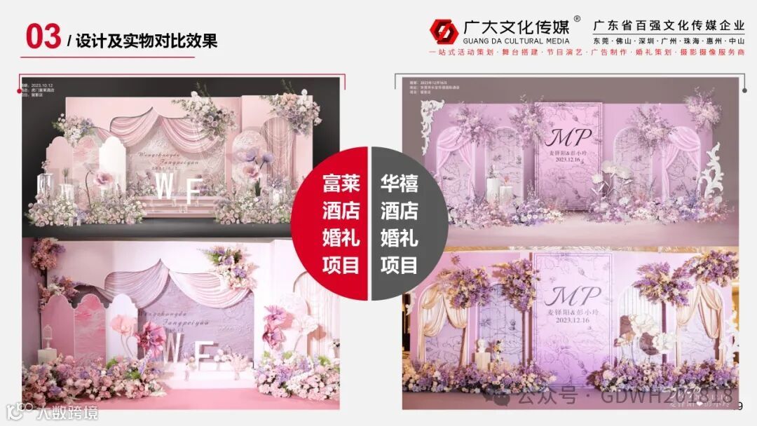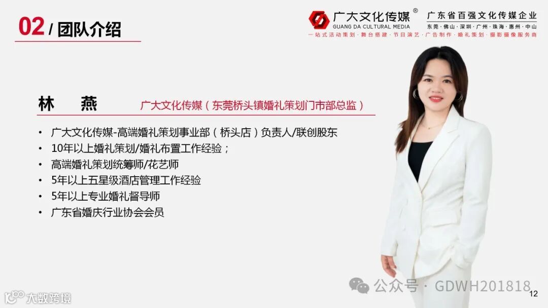 东莞市广大文化传媒有限公司(简称广大文化)成立于2018年,公司总部坐落于粤港澳大湾区滨海湾新区的核心地带,著名的模具制造名镇,东莞经济第一重镇长安镇,旗下拥有佛山市广大文化传媒有限公司,广大文化传媒共享物料仓,广大文化(东莞桥头镇婚礼策划门市部),我们立足于粤港澳,服务大湾区发展,是一家集:活动策划、全案设计、活动执行、庆典演出、婚礼策划、婚庆布置、舞美搭建、舞台灯光音响租赁、企业年会、开业庆典、乔迁庆典、周年庆典、奠基仪式、礼仪模特、主持人、节目演员、会务服务、广告设计制作安装、VI形象视觉设计、宣传片拍摄、短视频制作、活动摄影摄像于一体的全产业链实体型运营公司。