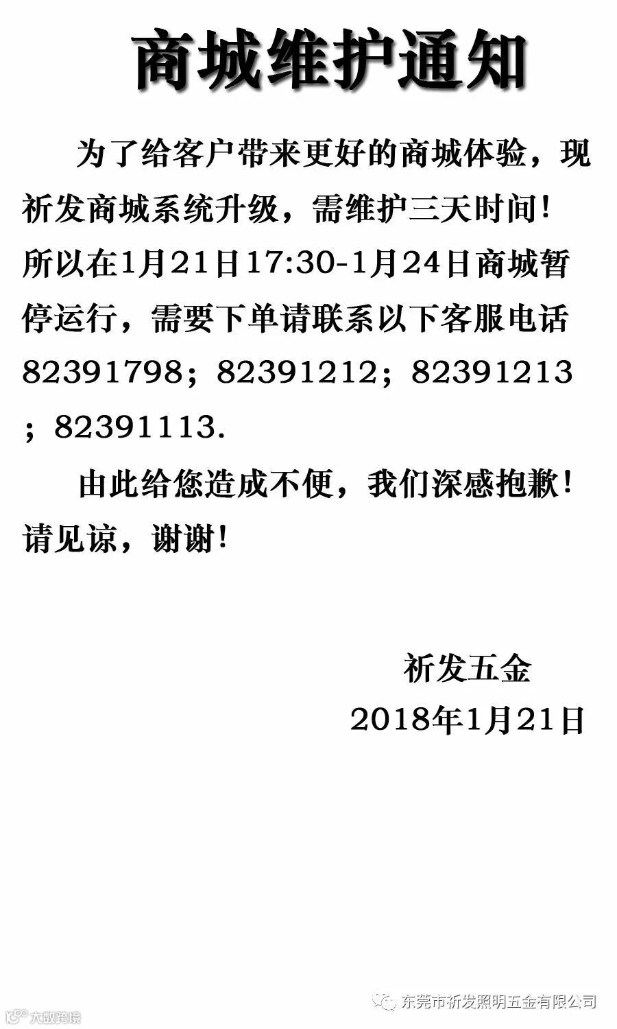 商城维护!暂停下单通知!