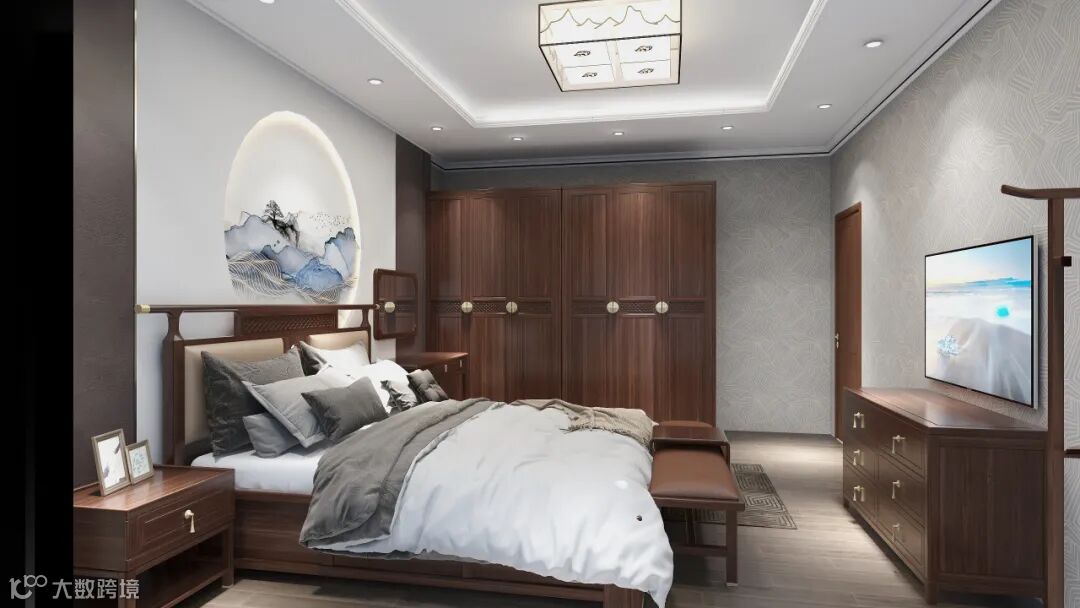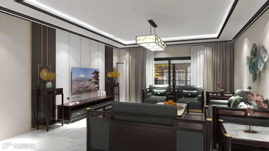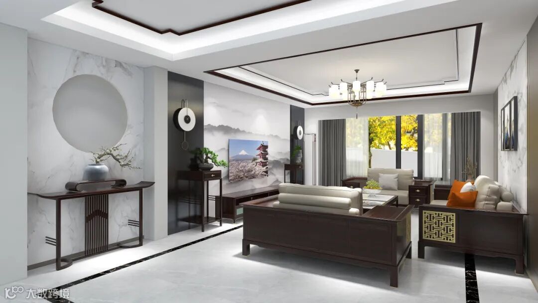 通过表现实木轻薄化,比例均衡和细节精致的同时用金属点缀简化的东方印记、方圆搭配、虚实结合突出中式审美。