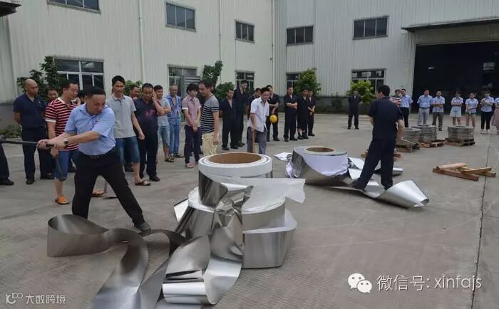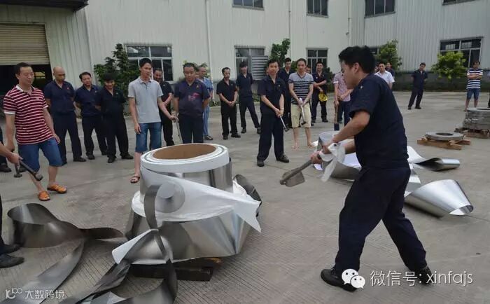 有海尔砸冰箱挽回公司美誉,今有鑫发砸钢带抓紧质量生命线,希望此次的“退货材料销毁大会”只是抛砖引玉,警示生产职责部门更加重视品质管控,秉持严谨的工作态度,让鑫发可以做到坚定专注,有口皆碑。