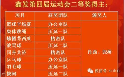 图一、鑫发第四届运动会二等奖名单
