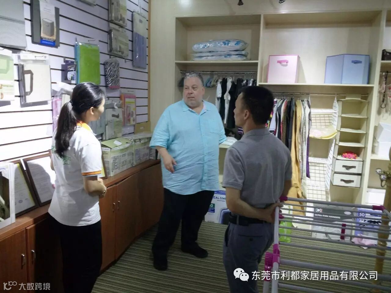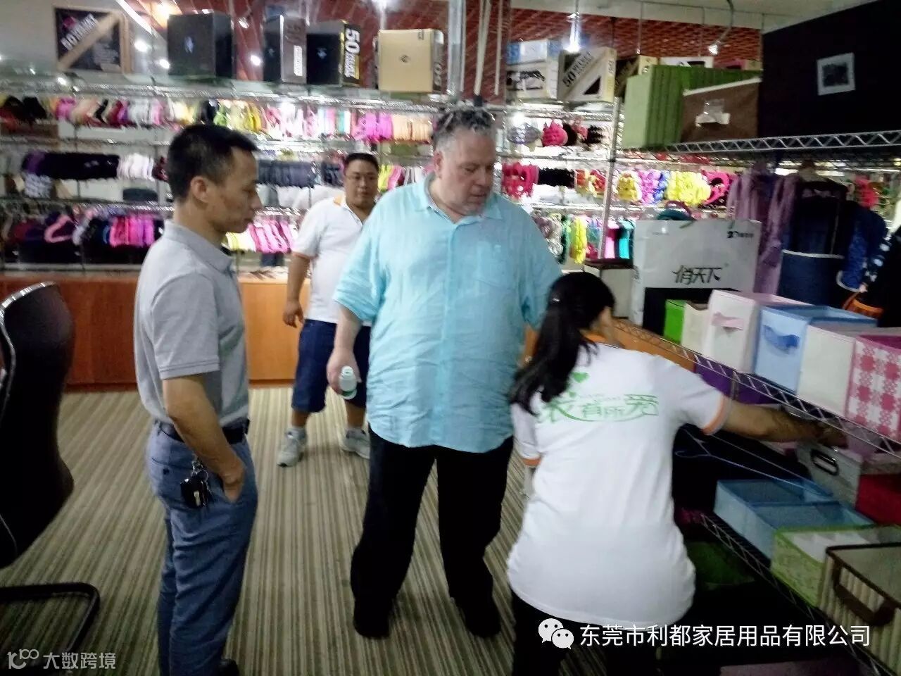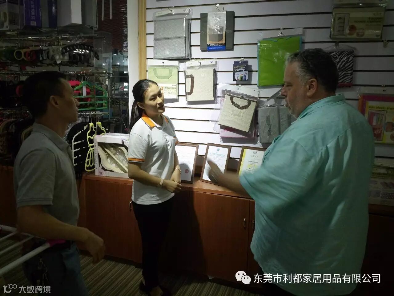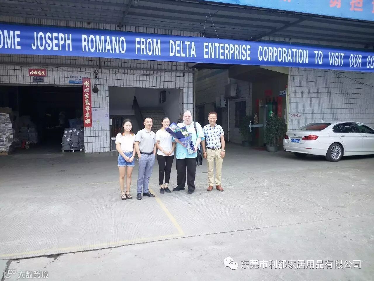 图右一董事长(刁国有)、右二约瑟夫.罗马诺先生、右三业务员(刁雅娟)、左二 Delta Children's Products Corp(唐总)、左一业务员(冯姣)