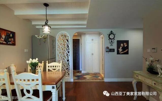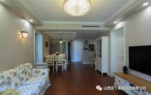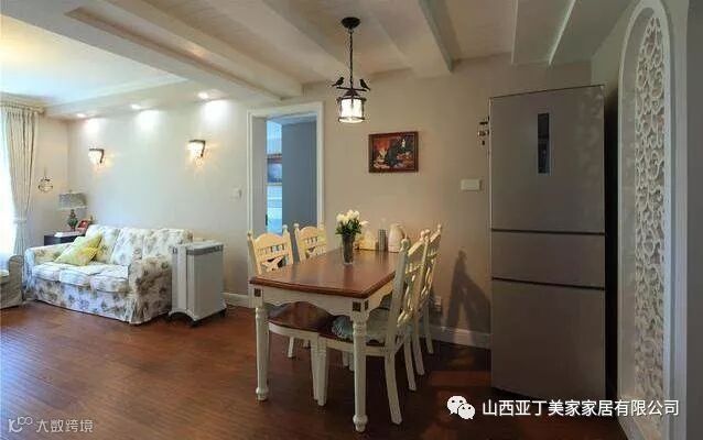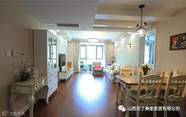 从餐厅看向客厅部分,屋子里采光也是很棒的,餐厅的吊顶很有特色。