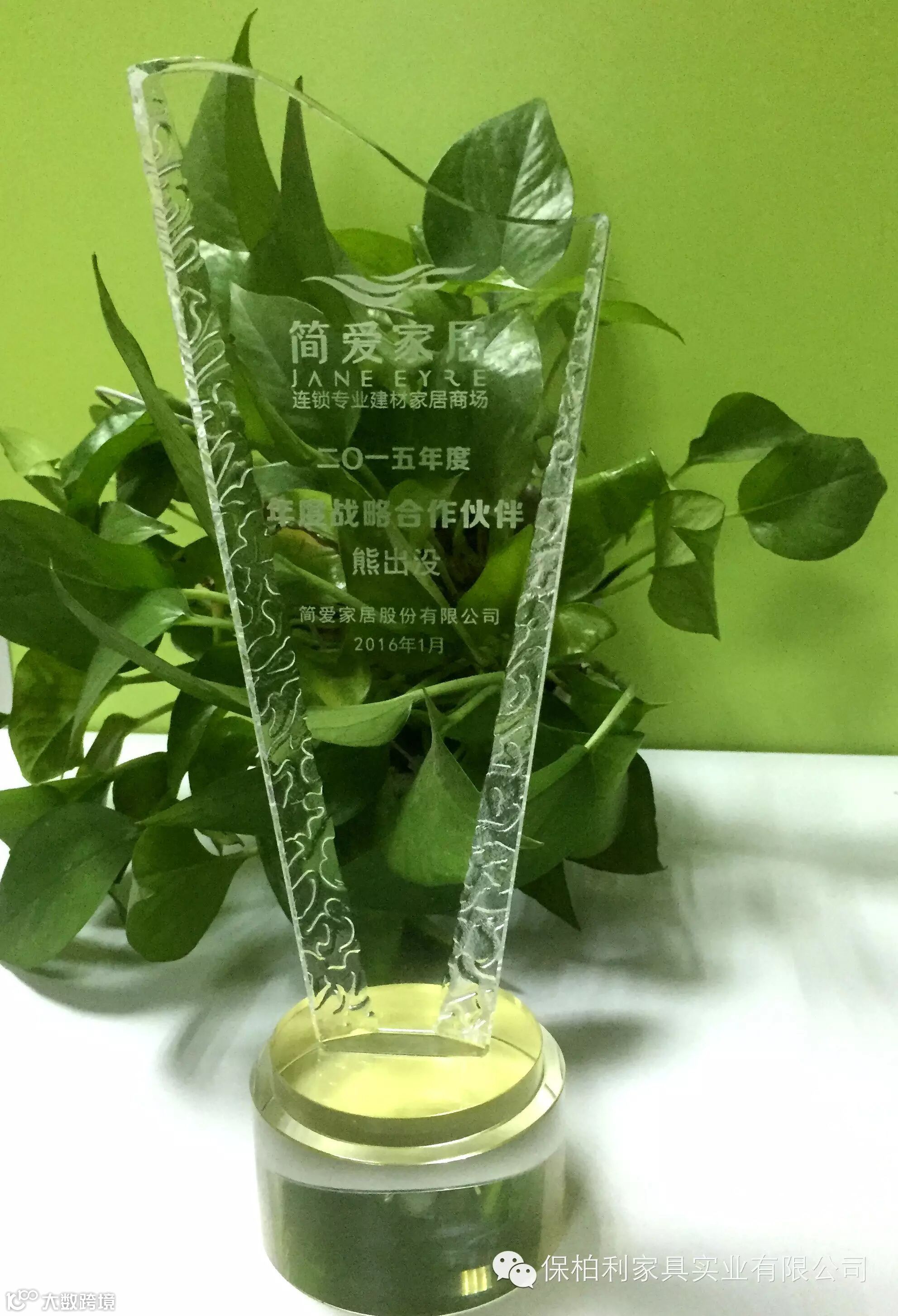 再次祝贺保柏利熊出没荣获2015年简爱家居战略合作伙伴奖!同时感谢简爱家居和新老顾客一直以来对保柏利熊出没家具大力支持,谢谢!