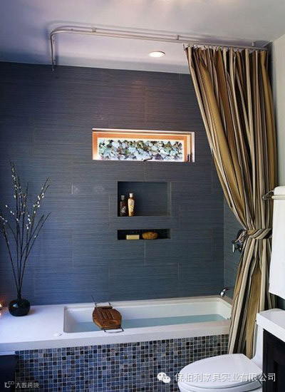 二、如果淋浴区只有两面有墙,那浴帘杆只能选择那种圆弧的钢管固定在墙上了,这种固定的圆弧钢管有一个弊端就是由于受力不均,时间长了容易发生松动。
