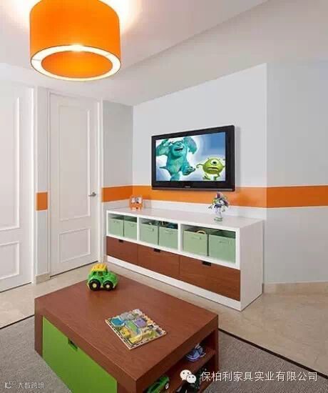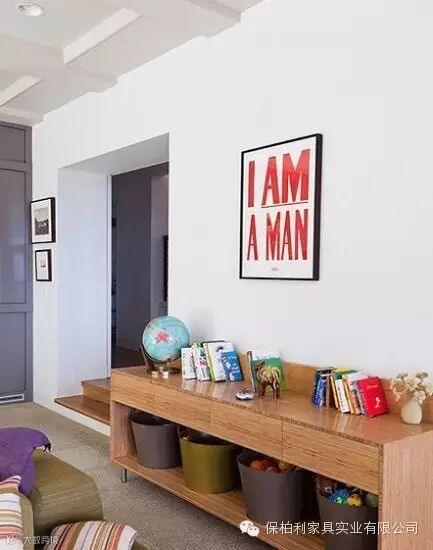 许多柜体既不设置抽屉也设置不柜门,故意的留白,以供给我们自由发挥。我想,对于空间不大的家庭,用作收纳是最最适合不过的了。看客厅中的这款边柜,主要部分镂空,主人正好的摆入收纳桶,将孩子的各类玩具整齐收入其中,简单而便捷。