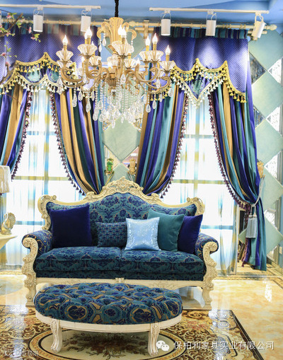 欧式风格窗帘颜色搭配指南四、蓝色+橘色:现代
