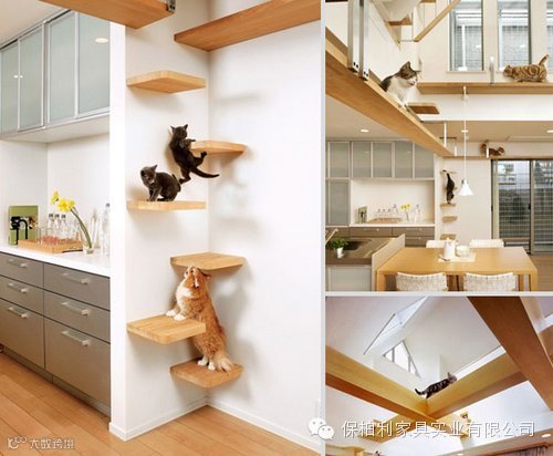 保柏利家具实业有限公司如果家里养宠物,这些小家伙们可能会经常上上下下到处乱窜,现在的家居设计也考虑到了他们的需求~~各种“天梯”“山洞”错落有致,放佛进入一个小小的游乐场。