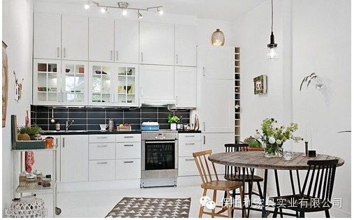 嵌入式设计节约空间,黑白线条、方块增强了空间的层次感,且实用性极强,给人以整齐洁净的感觉,不禁有了在灶台前做一顿美味的冲动。