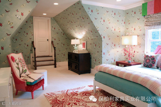 阁楼的装修色彩选择要注意根据空间而定。阁楼几乎都存在一端或两端低矮的特点,建议采用暖色调浅色系做装饰,比如橙红、明黄等。而咖啡、黑色、胡桃木等过深过重的颜色会给人带来沉闷的感觉,不宜使用。