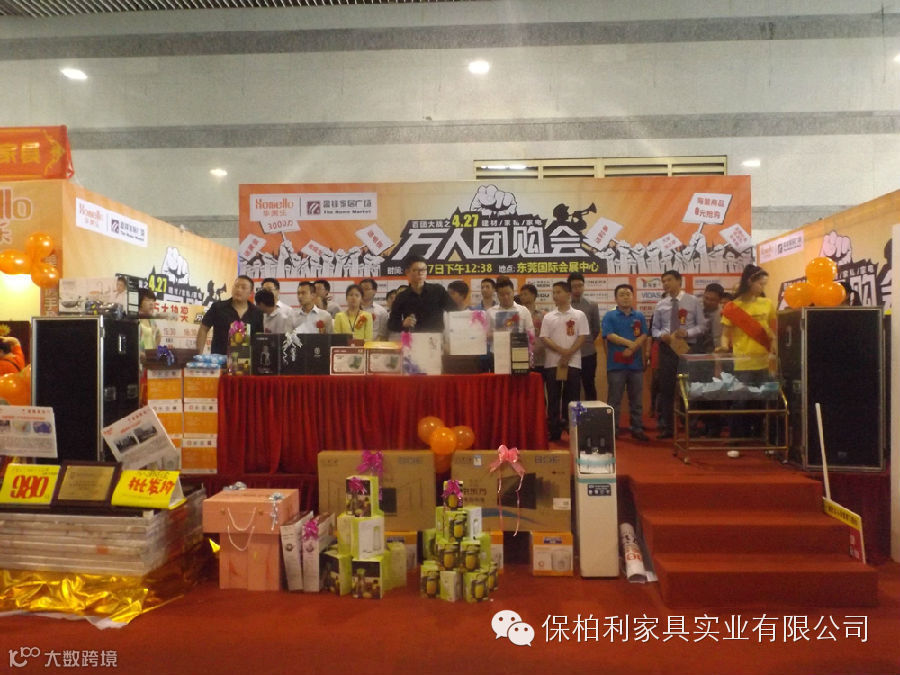 保柏利家具实业有限公司4月27日,保柏利公司与盈锋家具广场专卖店携手熊出没在东莞市国际会展中心推出万人团购大会活动,活动现场人山人海,在活动现场签售的订单超过100单,截止发稿时间,订单已经突破60万……
