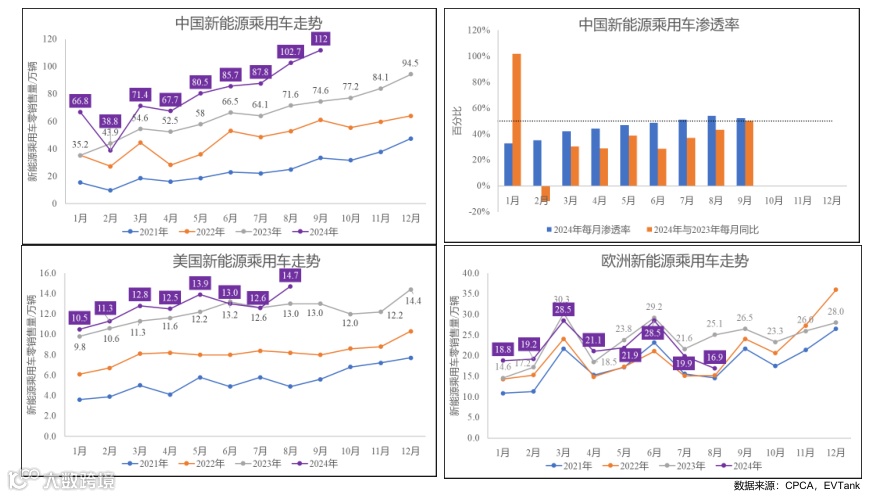 1.新能源在国内表现亮眼‘美国平稳上升,欧洲下跌