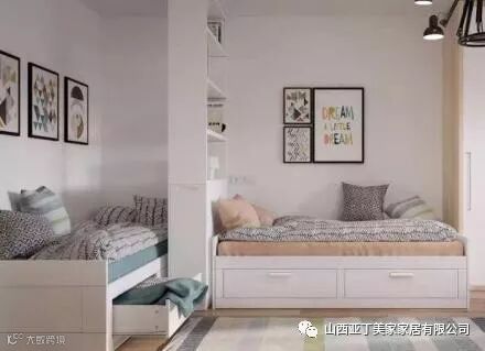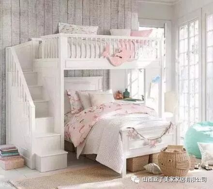 若是房间的空间有限,小户型的家庭可以试试上下床。可以选择将台阶做成抽屉的样式,增加储物空间,或者搭配上定制柜子。
