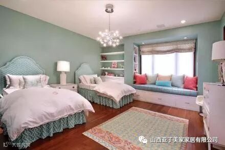 若是房间的空间足够,可以设计成并排的双床,搭配床头柜和装饰品。这样的设计可以让两个床铺分开来而又不偏不倚。