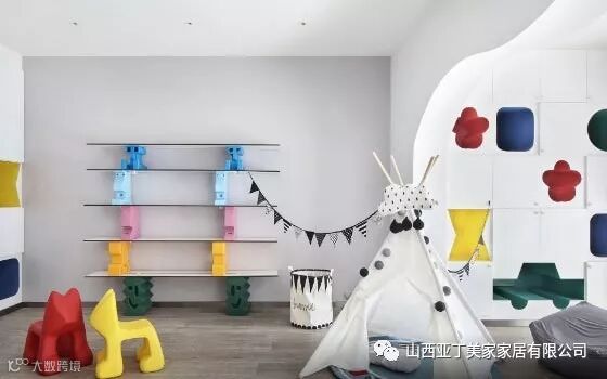 餐厅的面积很大,所以将剩余位置设置为儿童娱乐区,各种色彩亮丽的卡通装饰物让这个空间非常的卡通,陪伴小朋友一起快乐成长。