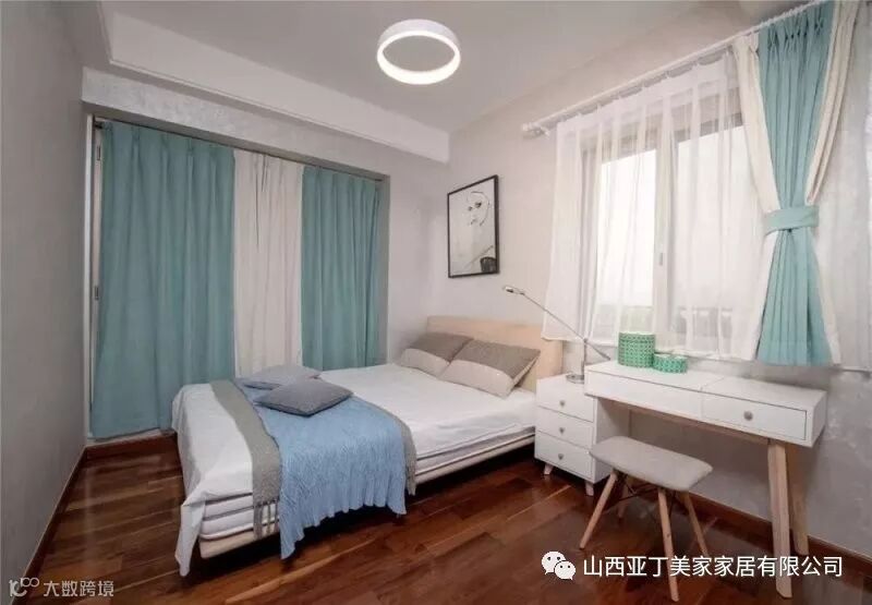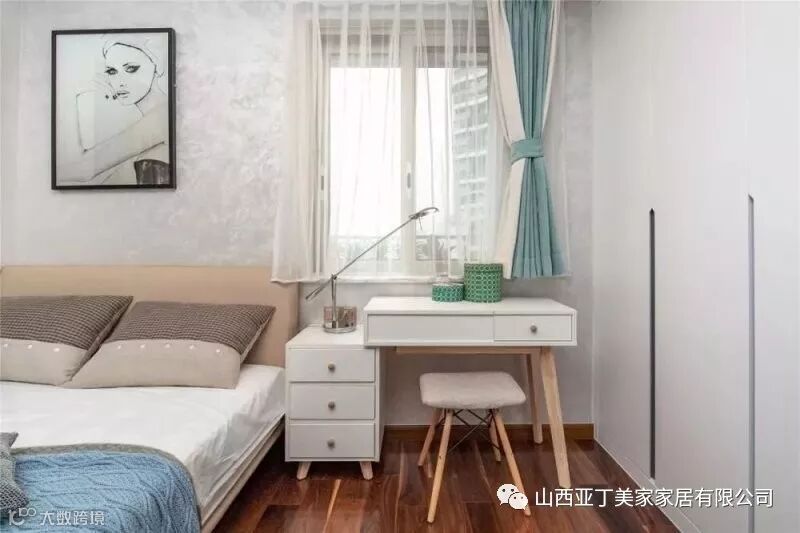 ▲床头侧边还有一个小窗户,旁边布置一个小书桌兼梳妆台,整个空间显得文艺优雅好别致。