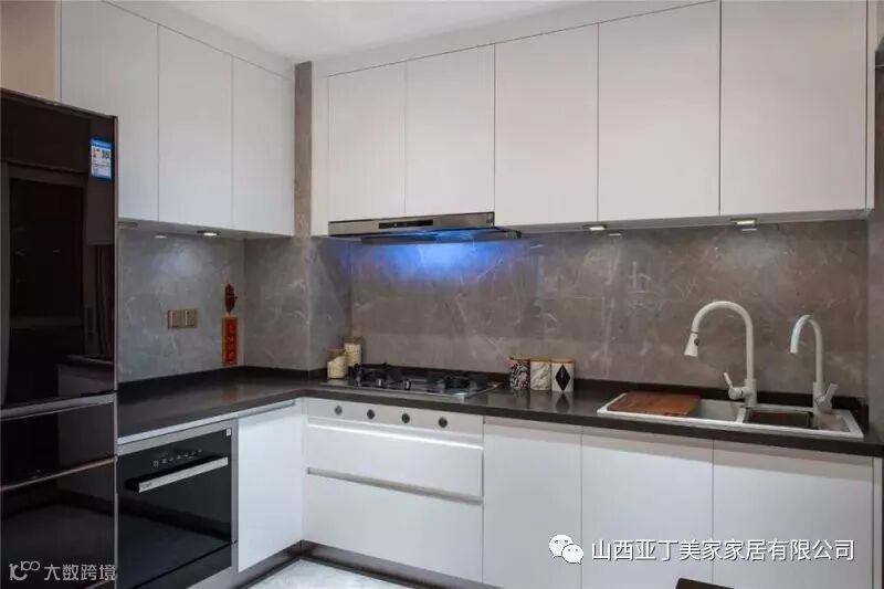 ▲厨房与餐厅以开放式的格局,整体洁白的橱柜搭配,让厨房空间充满了时尚大方的优雅感。
