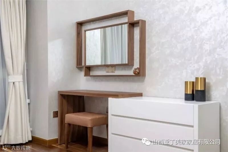 ▲床尾的斗柜与梳妆台,也为女主人提供了个实用的梳妆小角落。