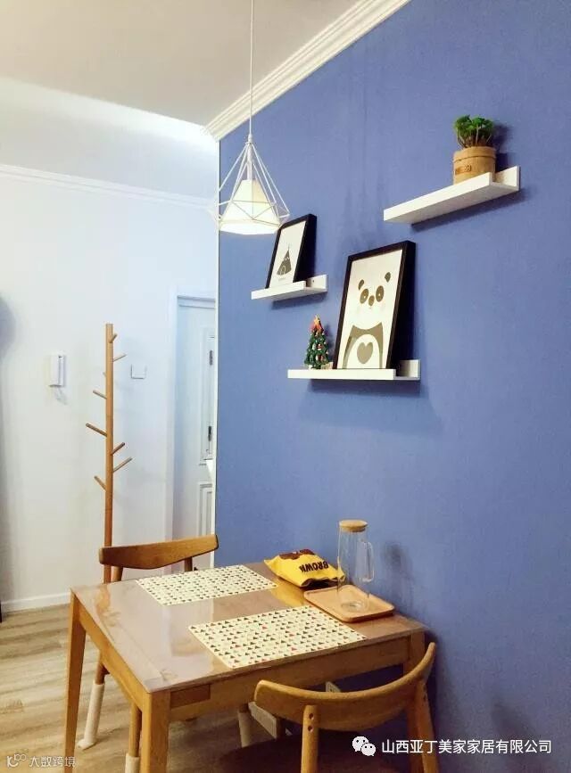餐厅区域设计师用蓝色的墙壁分割,在这样温馨的地方吃饭,我的食欲都增长不少。木制的餐桌自带轻盈感,一家三口坐在一起吃饭,太幸福的感觉了。而且这样的餐桌没有塑料的廉价感,感觉自己的逼格高了不少档次。忍不住自夸我的眼光真好。餐灯最具浪漫气息,十足浪漫。