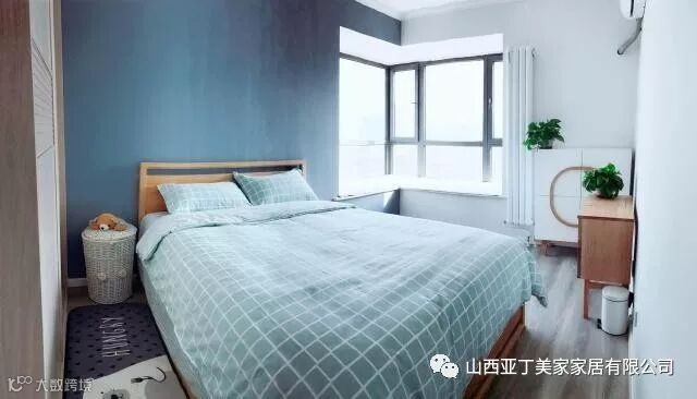 来看看主卧室吧,从别的网友家安利过来的收纳柜太好看了。另一侧墙面装上了五斗柜作为电视柜,转角的飘窗还做成了休闲区,看书、喝茶都方便。
