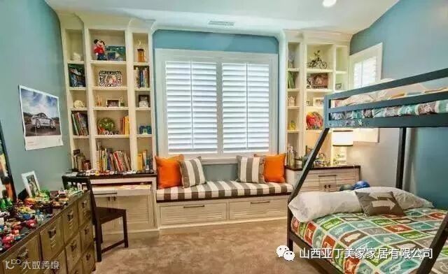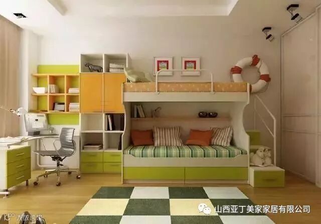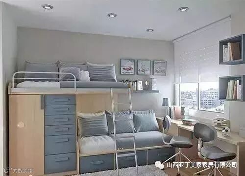 如果家里儿童房面积不大,并且又有两个孩子的,那一款上下铺的床是很有必要的~
