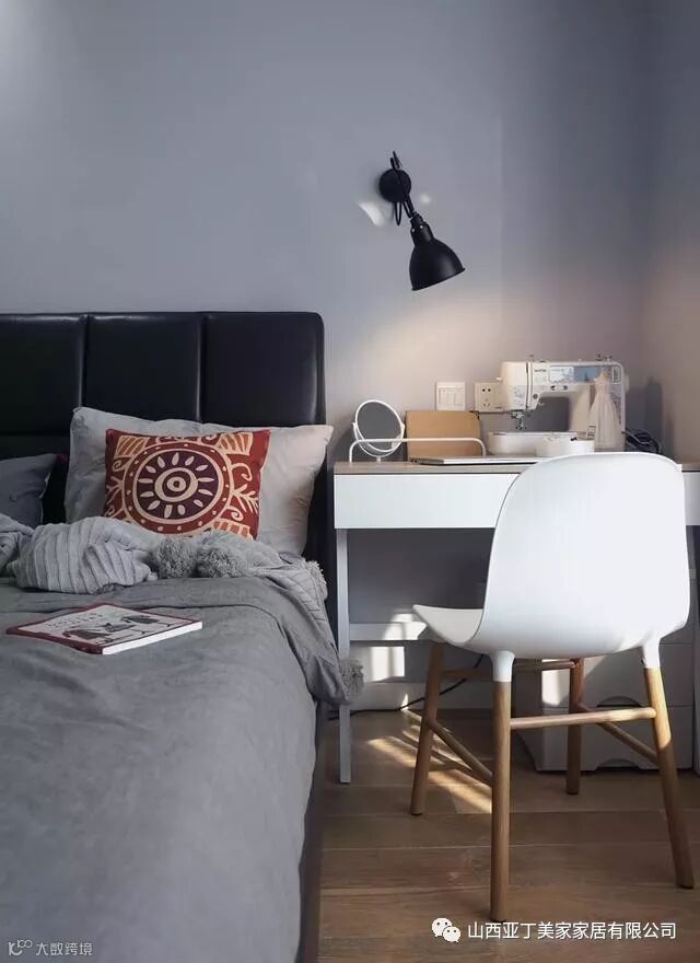 对于一般人家来说,在床头都会摆放床头柜。但是有时候床头柜,不一定要一左一右两个对称,一边节省出来的空间就可以设计一个小小的书房啦。